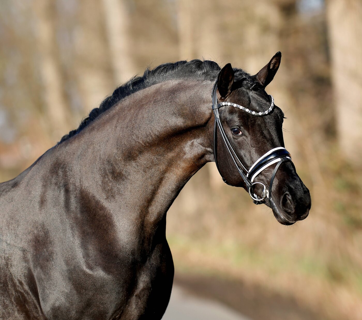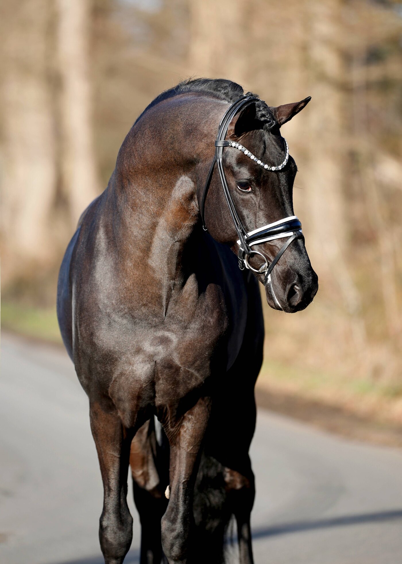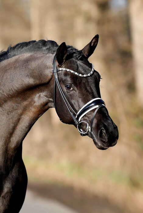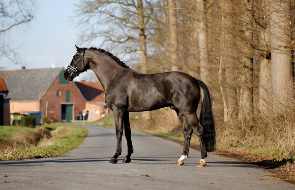 Ein wirklich formatiger Dressur-Nachwuchshengst mit ganz viel Ebenmaß und Harmonie in den Körperpartien. Er überzeugt durch sein makelloses Exterieur, angenehmen Charakter und Grundgangarten der Ausnahmequalität, hervorzuheben ist dabei der enorme Schub aus der Hinterhand und ein Höchstmaß an Elastizität.
