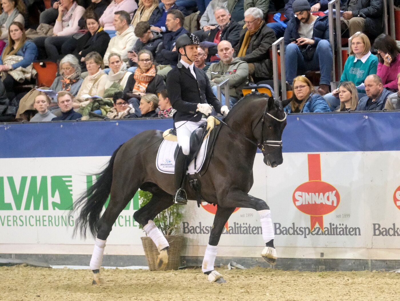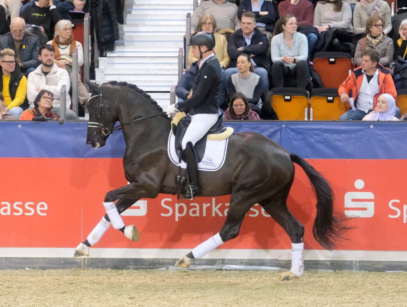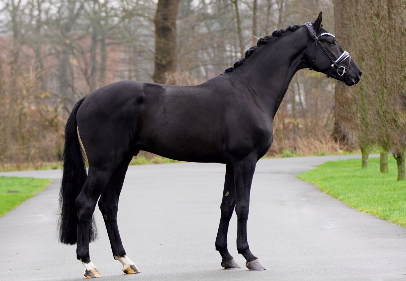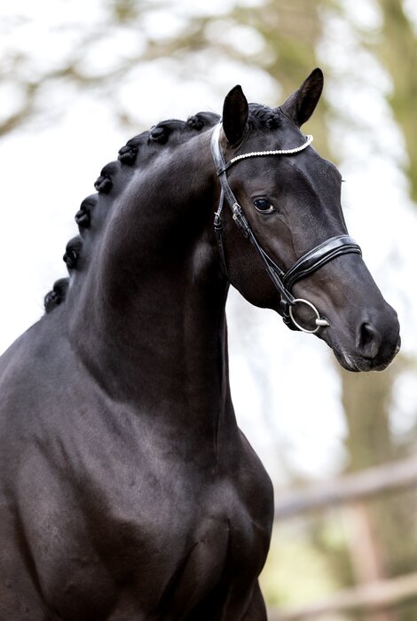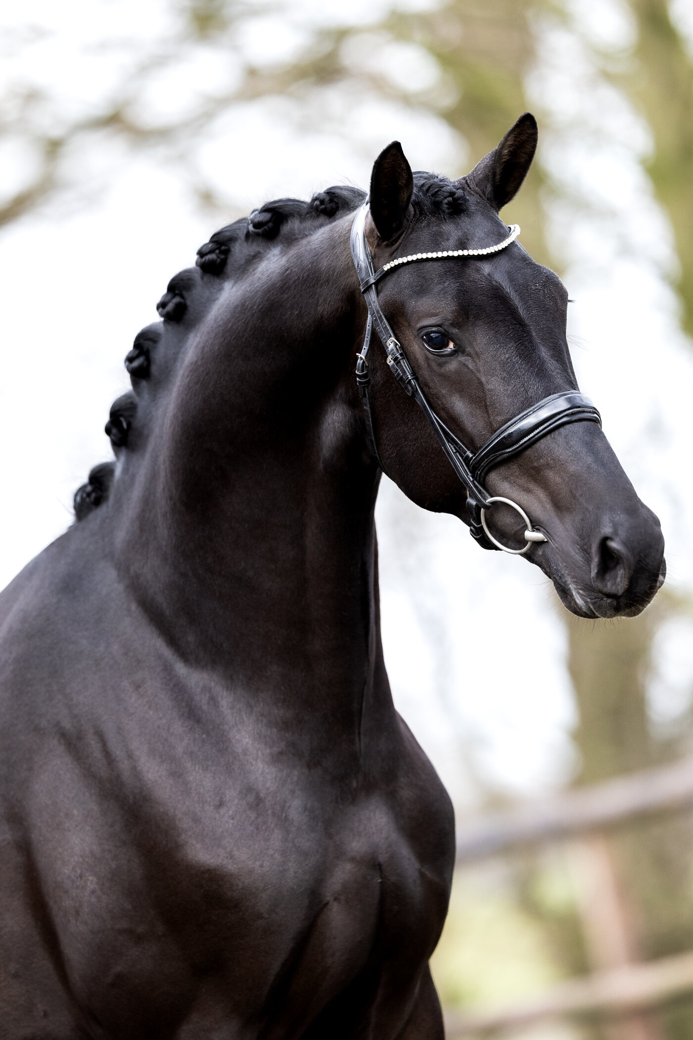 Ein wirklich formatiger Dressur-Nachwuchshengst mit ganz viel Ebenmaß und Harmonie in den Körperpartien. Er überzeugt durch sein makelloses Exterieur, angenehmen Charakter und Grundgangarten der Ausnahmequalität, hervorzuheben ist dabei der enorme Schub aus der Hinterhand und ein Höchstmaß an Elastizität.