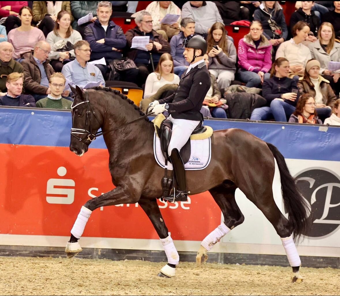 Als Sieger verließ er seinen 50 Tage-Test in Adelheidsdorf mit der Endnote 9,01. Für den Galopp gab es die Höchstnote 10,0. (Schritt 9,0 / Trab 8,5 / Gesamteindruck 9,0 / Rittigkeit 8,5 / Charakter, Leistungsbereitschaft 9,5 )