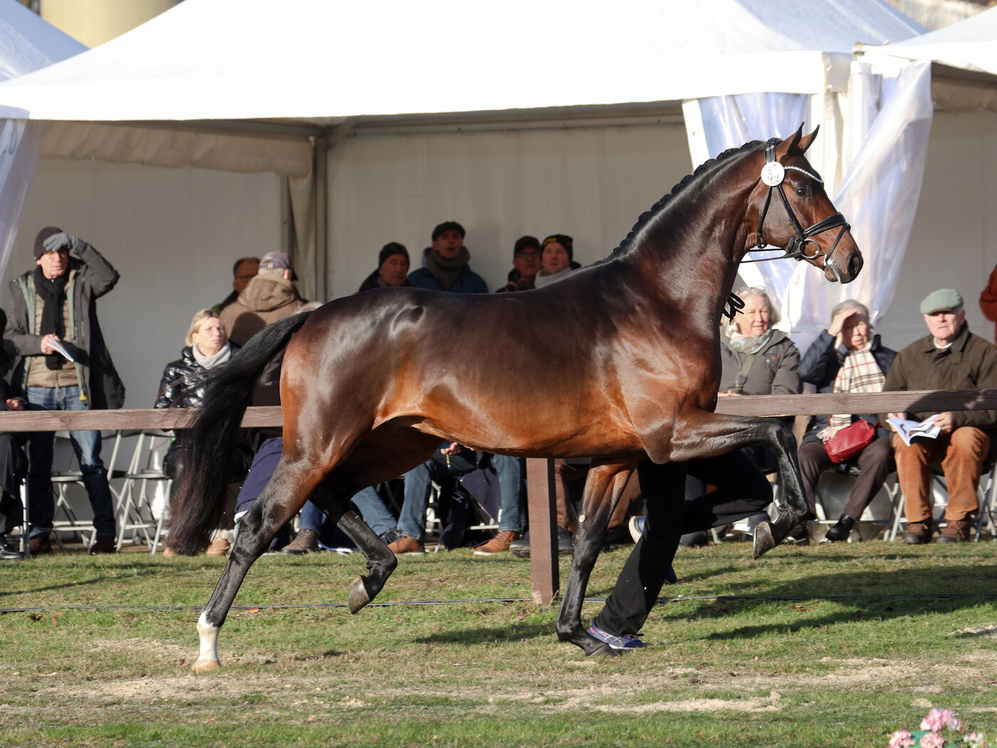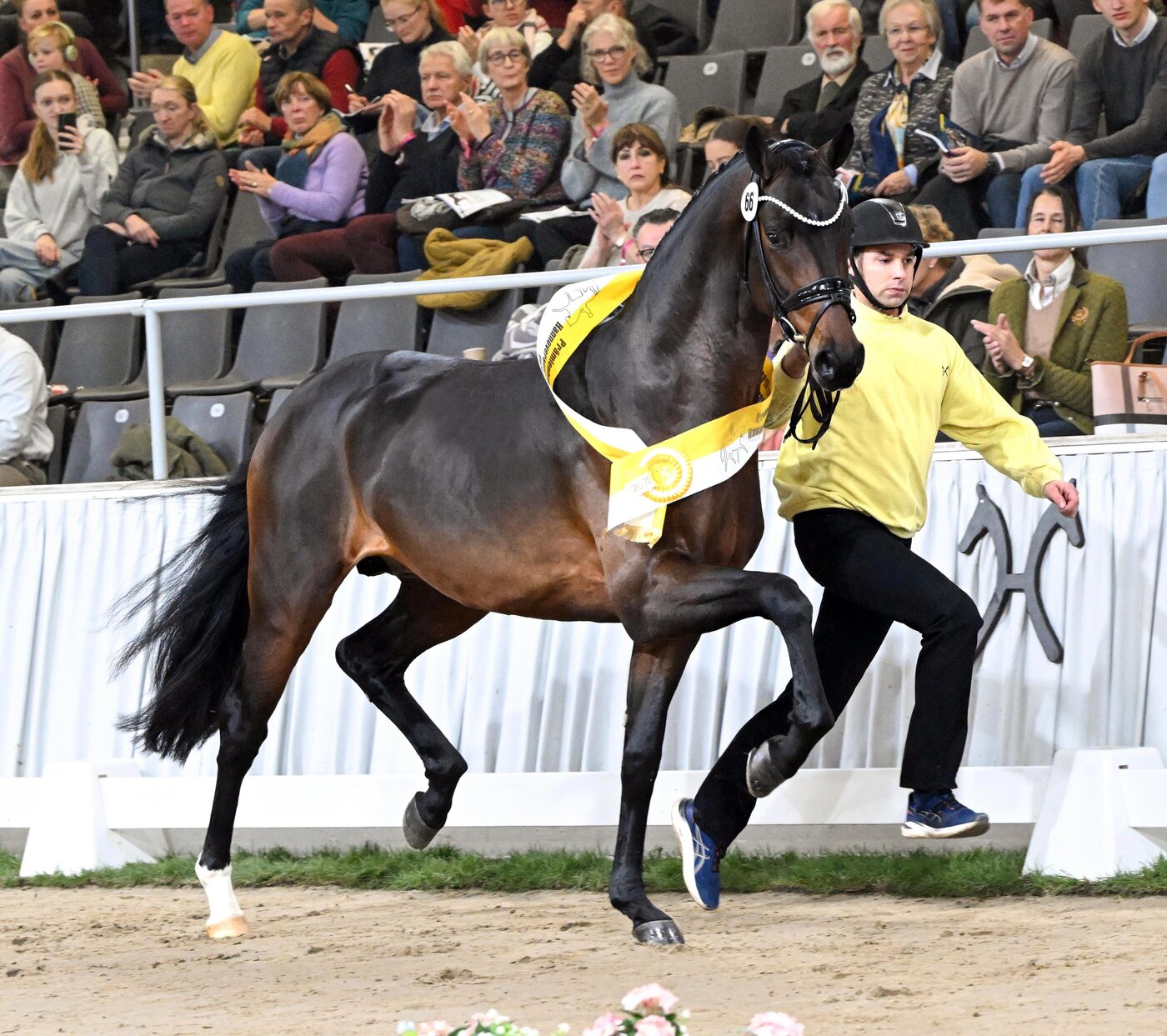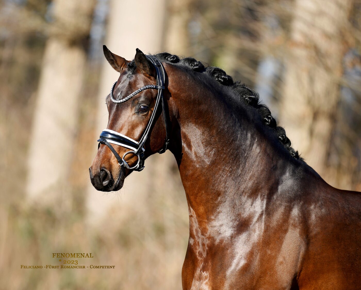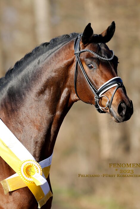 In der begehrten dunklen Jacke, optimal mit großzügigen Reitpferdepartien konstruiert, ist Fenomenal ein Eyecatcher, der jeden Betrachter mit seinem herausragenden Typ direkt für sich einnimmt. Der aus dem Debütjahrgang des Hauptprämienhengstes Feliciano hervorgegangene Hengst gehört zur absoluten Spitze seines Jahrgangs und wurde nach überragenden Auftritten als Prämienhengst der Hannoverschen Hauptkörung 2025 in Verden gefeiert. Seinem Namen alle Ehre machend trumpfte er auf der Dreiecksbahn, an der Longe und in der Freilaufpräsentation mit seiner Bewegungsqualität bei maximaler Schulterfreiheit und einem aktiv unter den Schwerpunkt fußendem Hinterbein auf und war einer der Publikumslieblinge seines Körjahrgangs.